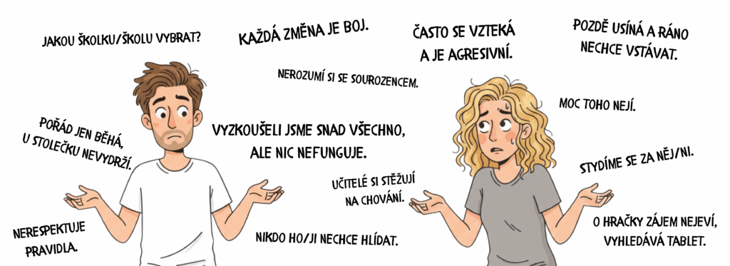 Nejčastěji se na nás obracejí rodiče dětí ve věku od tří do osmi let s odlišnostmi v chování, hypersenzitivitou nebo projevy, které mohou být pro okolí i samotné dítě náročné. Jedná se především o děti s vývojovou dysfázií, poruchou autistického spektra, ADHD, poruchou senzorického zpracování a dalšími obtížemi, které ovlivňují jejich vývoj.